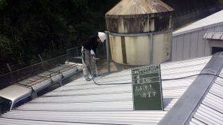 | 2.下地調整作業中 高圧洗浄(15Mpa)で屋根を洗浄し、汚れを落とします ![]() |